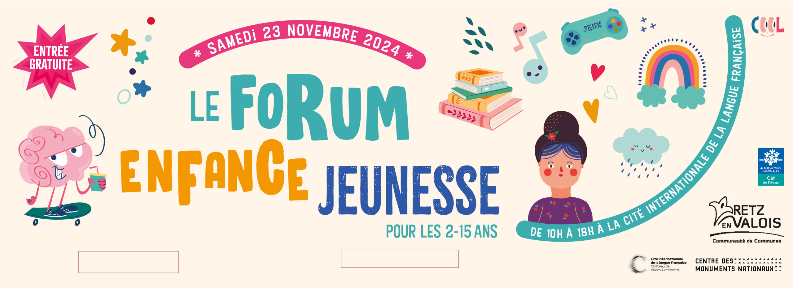 La Communauté de Communes Retz-en-Valois vous donne rendez-vous le samedi 23 novembre de 10h à 18h à la Cité internationale de la langue française à Villers-Cotterêts pour la quatrième édition du Forum enfance jeunesse ! Cet évènement fait écho à la journée internationale des droits de l’enfant !