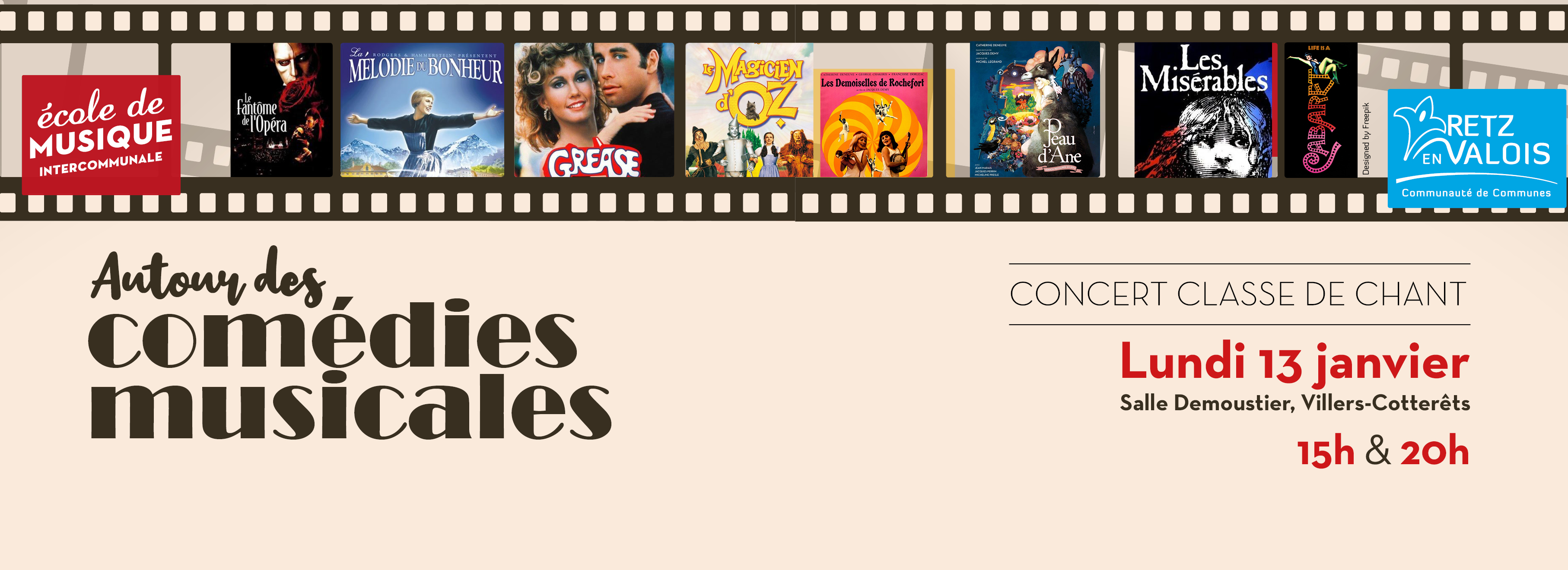 Venez assister au concert de la classe de chant de l’Ecole de Musique intercommunale autour des comédies musicales.
