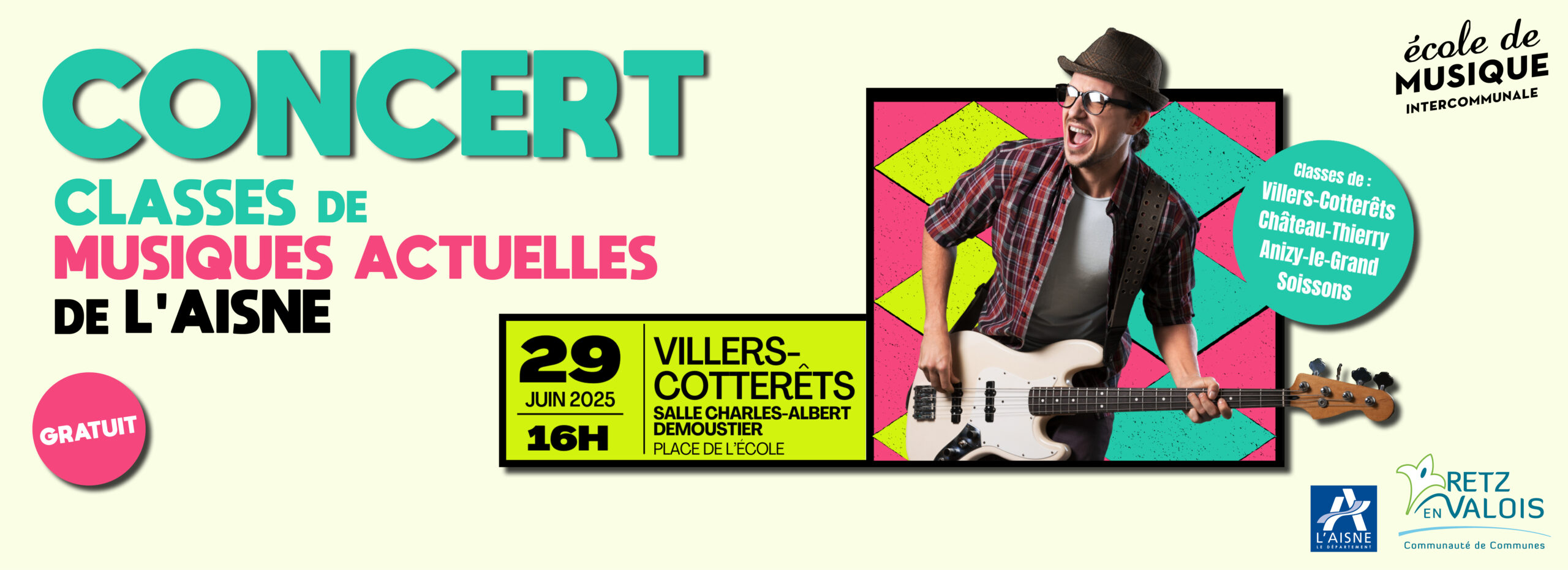 des écoles de musiques de l’Aisne : Château-Thierry, Anizy-le-Grand, Soissons et Retz-en-Valois.